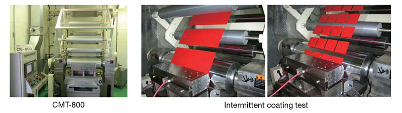Direct Drive motors for not only coating unit back-up roll but also Infeed and Outfeed roll is installed.You can select three coating methods (Die Coater, Bar Coater, Small Gravure Coater)by using our test coater.