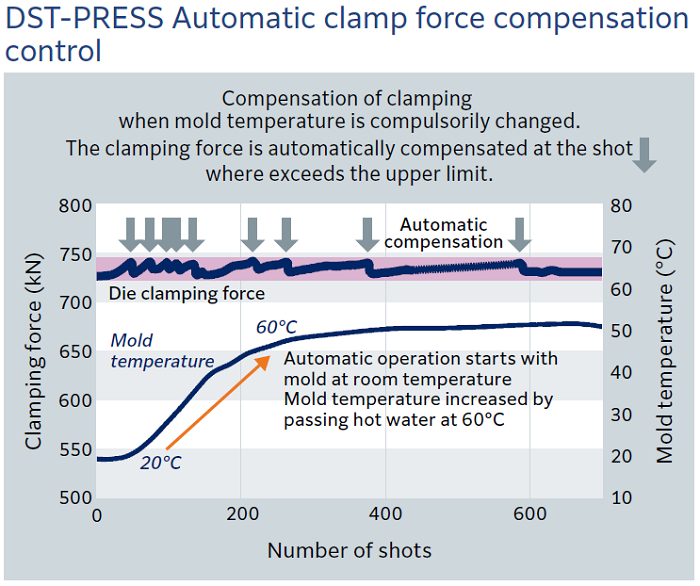 Automatic setting based on guideline setting values and advanced mold protection functions.