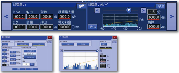 Displays Power Consumption (Calculated Value) of Molding Machine
